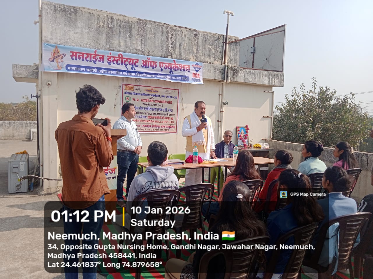 जिला नीमच में आयोजित इस कार्यक्रम के माध्यम से युवाओं को कौशल उन्नयन एवं स्वरोजगार के अवसरों से जोड़ने का प्रयास किया गया। विशेषज्ञों द्वारा प्रशिक्षण एवं मार्गदर्शन प्रदान किया गया। यह कार्यक्रम स्थानीय रोजगार सृजन को बढ़ावा देने हेतु आयोजित किया गया।